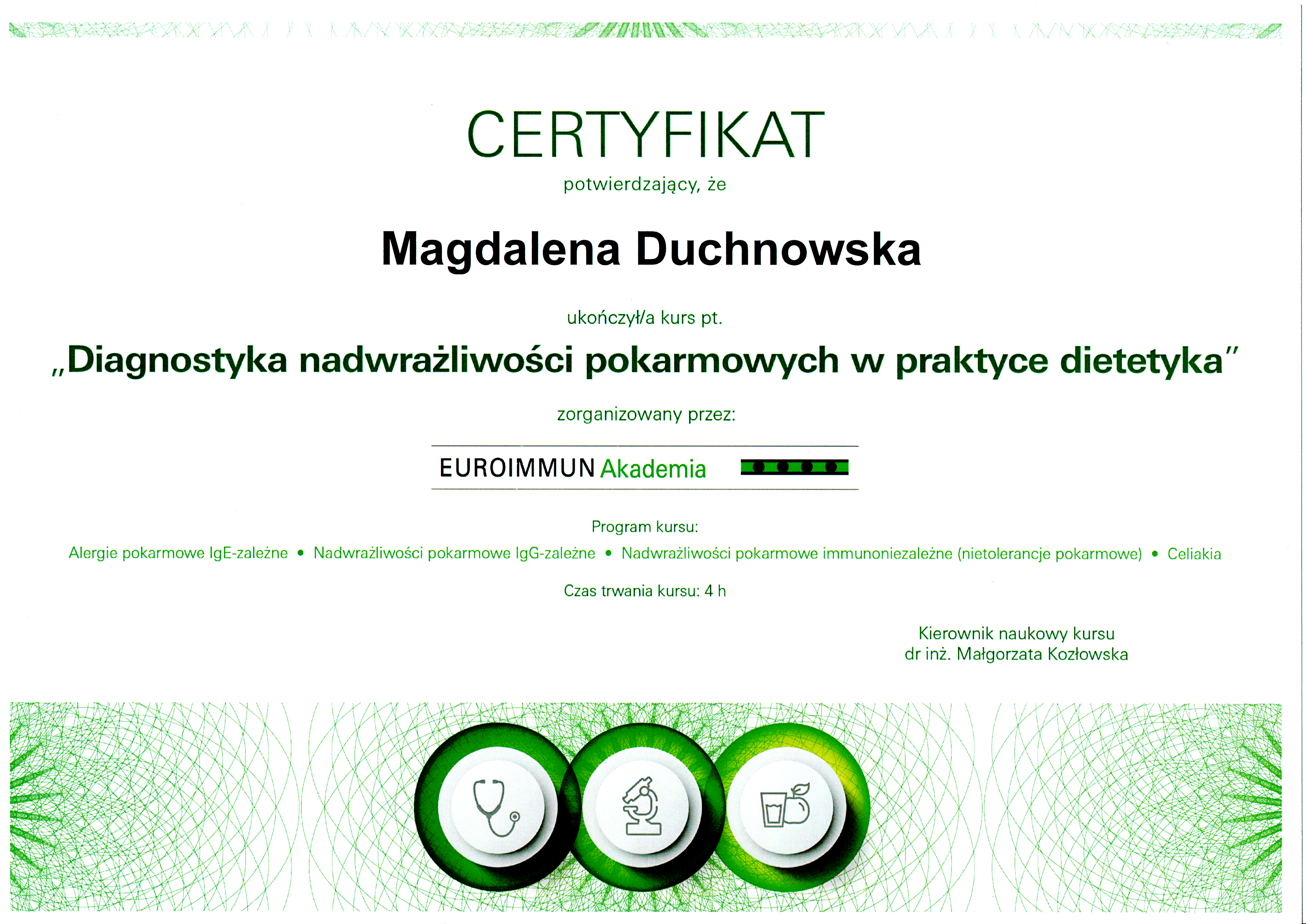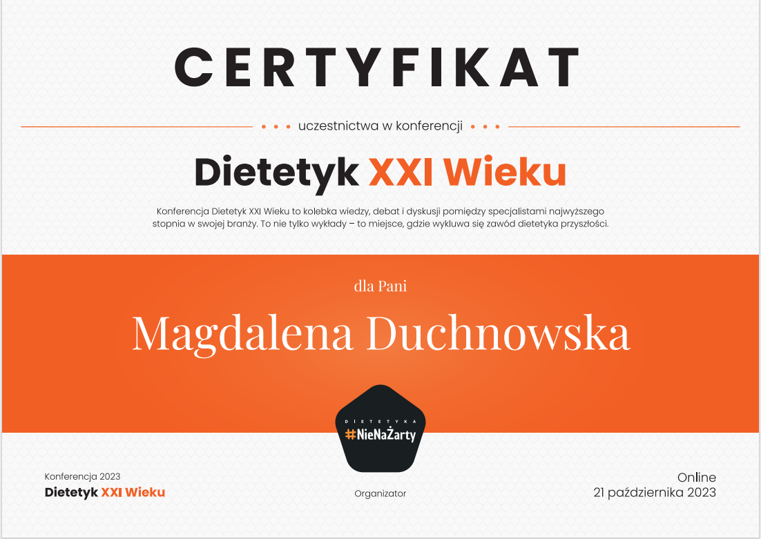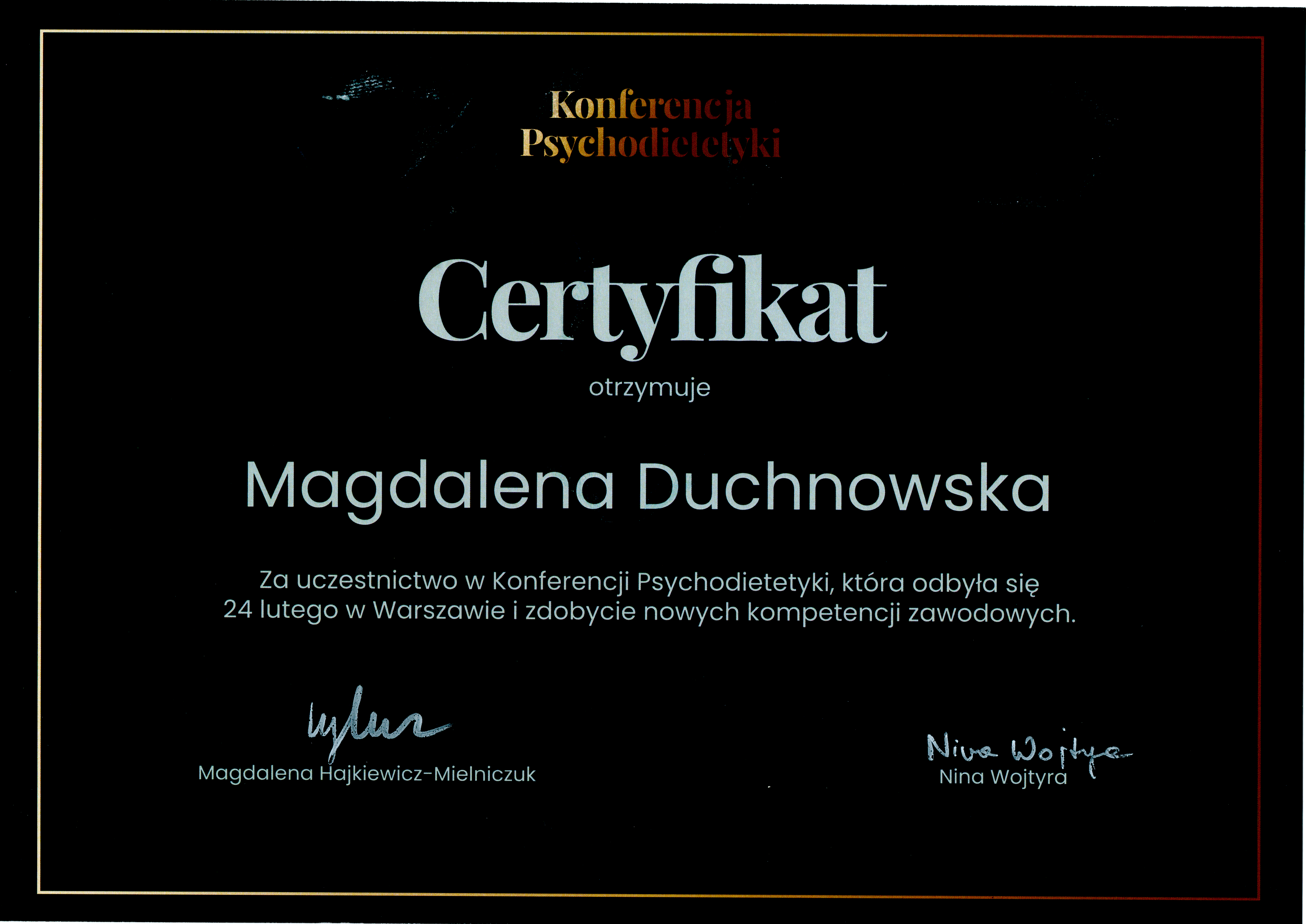 Nazywam się Magdalena Duchnowska i jestem dietetykiem klinicznym oraz psychodietetykiem.